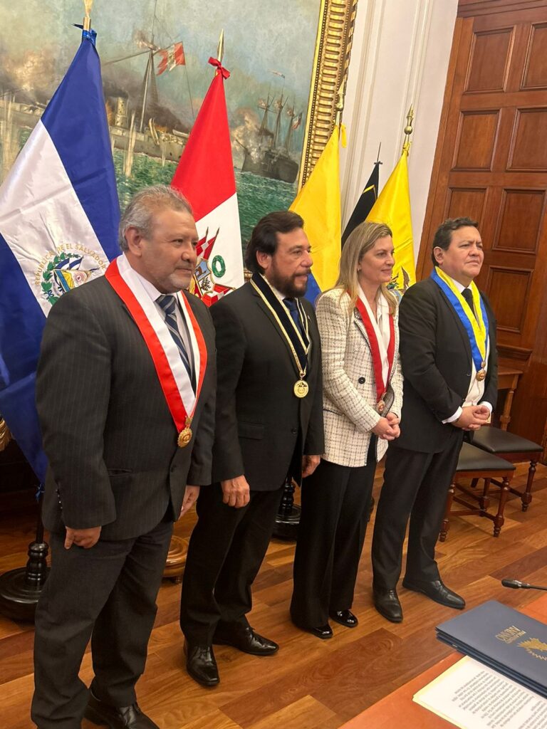 El Dr. Gustavo Pacheco Villar, parlamentario andino y presidente de UPLAC le otorga la “Gran Medalla de los Andes” al vicepresidente de El Salvador