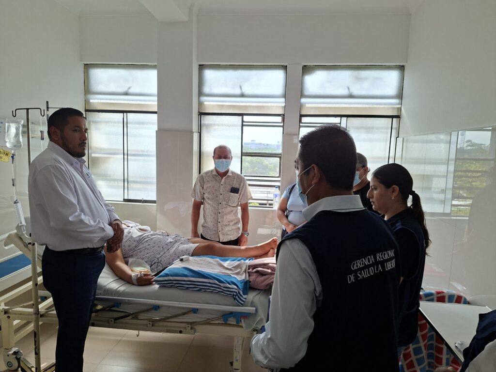 Para constatar que se brinde todo el apoyo y respaldo a la madre y demás familiares el gerente regional de Salud, Gerardo Florián Gómez se trasladó hasta el hospital Regional donde actualmente se encuentra la paciente de inciales V. V. Y. (37) recibiendo atención médica especializada.