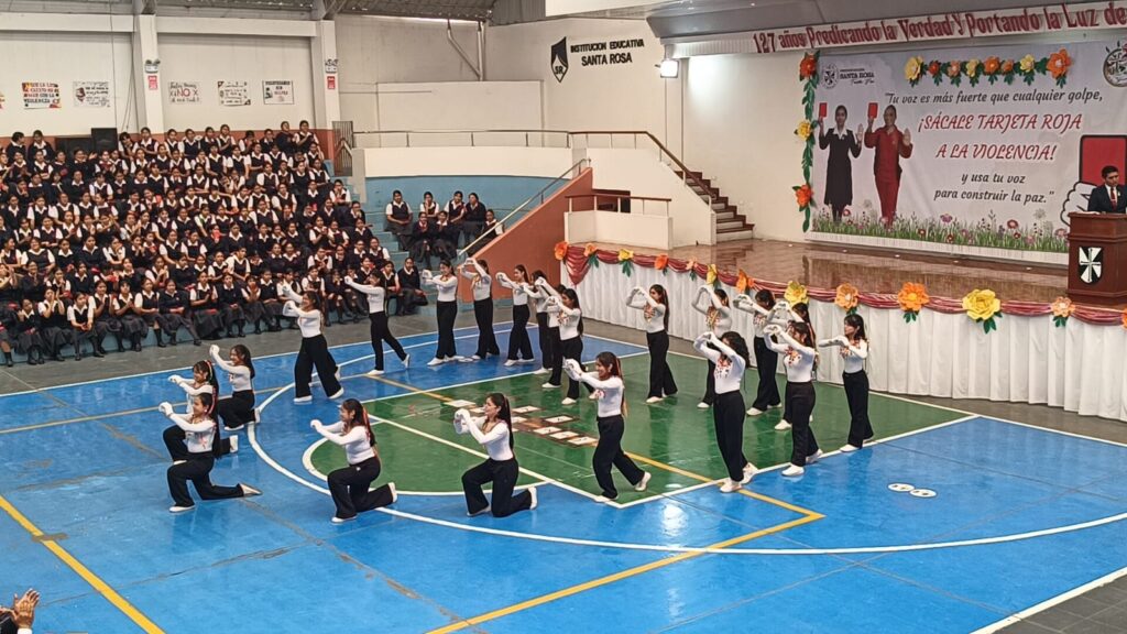 Esta importante campaña de sensibilización se dio inicio con una ceremonia especial en el auditorio del prestigioso plantel, donde también hubo juegos clásicos como el rayuelo, representaciones escénicas sobre casos de violencia y acciones positivas, coreografías y cantos alusivos a la vida y la paz, con la participación de docentes, alumnas y padres de familia.