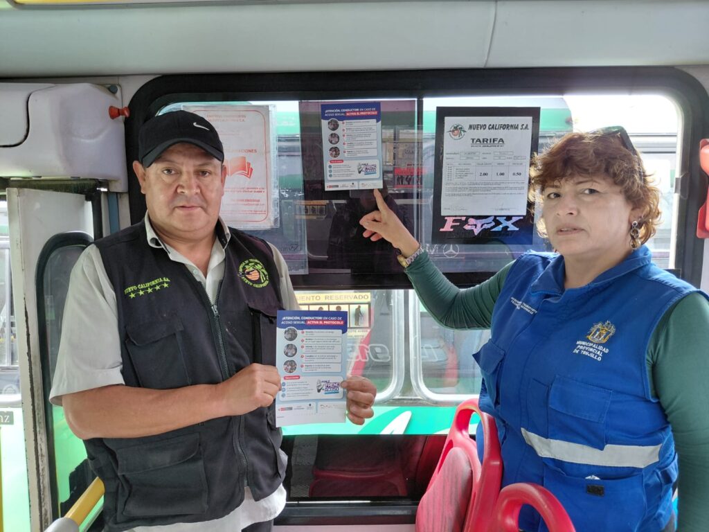 La Municipalidad Provincial de Trujillo (MPT), a través de la Subgerencia de Seguridad Vial, viene promoviendo una campaña de sensibilización contra el acoso sexual en el servicio de transporte público, dirigida a conductores y cobradores, con el fin de informarles sobre la correcta aplicación del protocolo de atención a las víctimas.